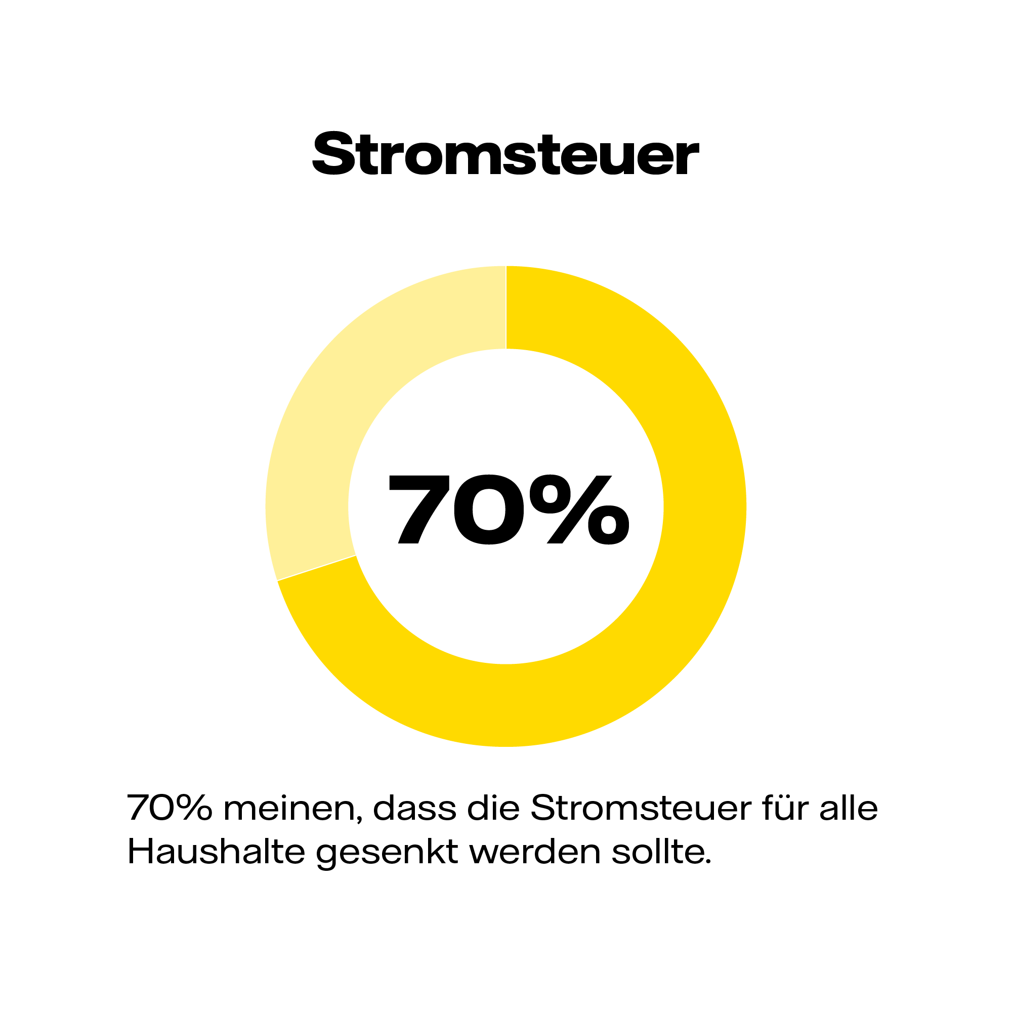 28 Prozent der Befragten sind der Ansicht, dass insbesondere Unternehmen, die in energieeffiziente Technologien investieren, weniger Stromsteuer zahlen sollten. 27 Prozent sprechen sich für eine Entlastung aller Unternehmen bei der Stromsteuer aus. 26 Prozent wünschen sich, dass vor allem Haushalte, die in energieeffiziente Technologien investieren, von einer gesenkten Stromsteuer profitieren sollten.