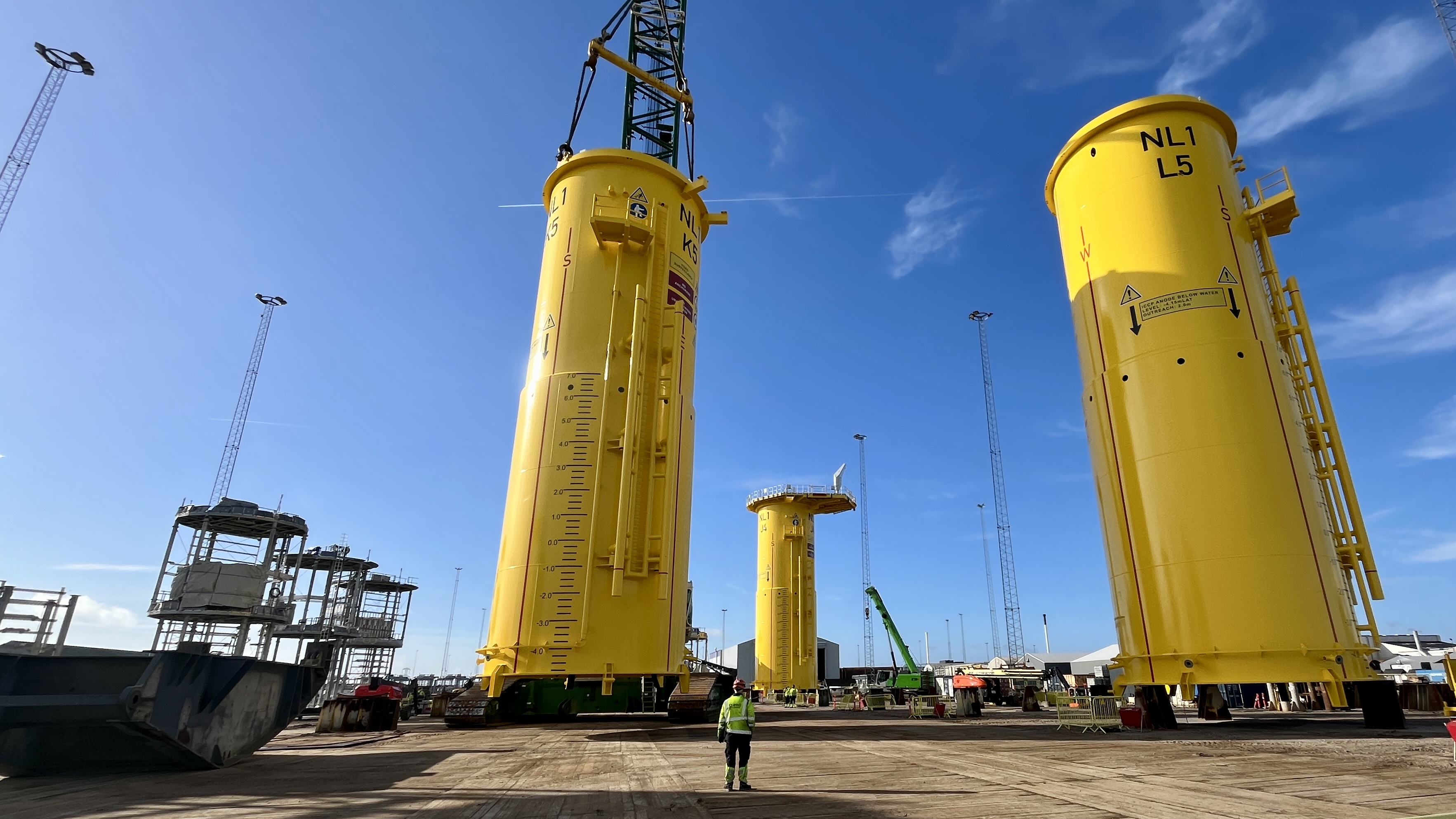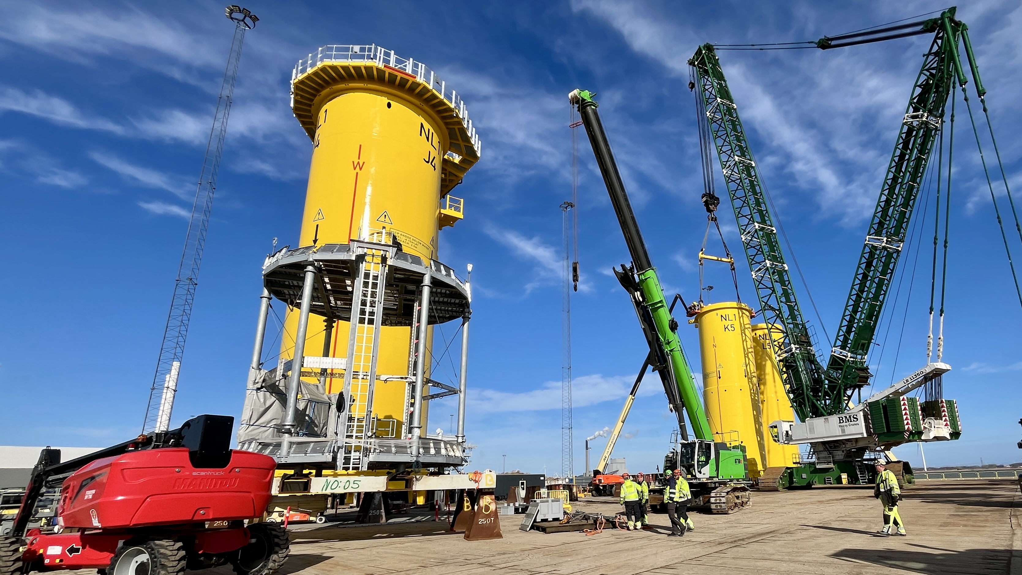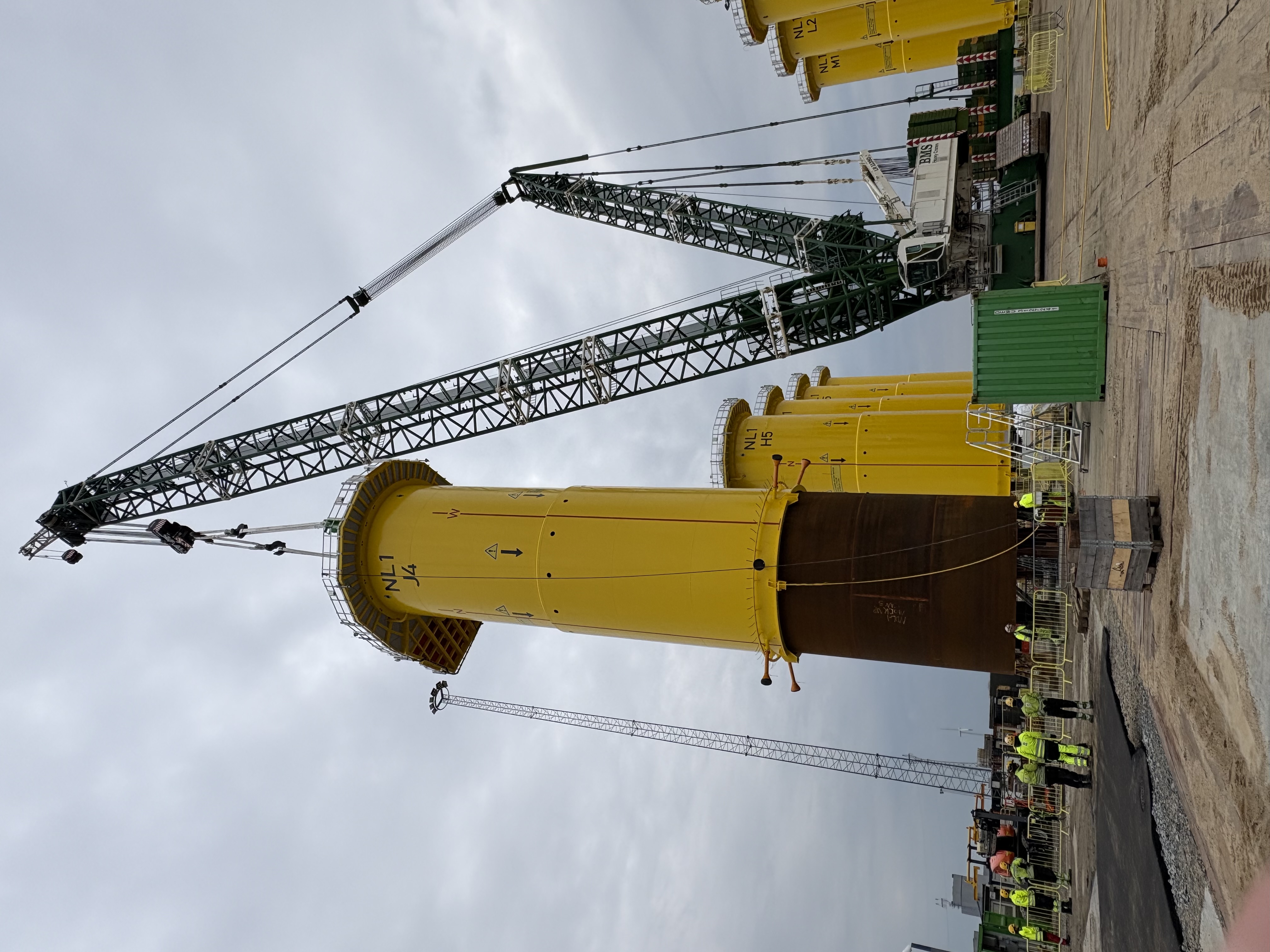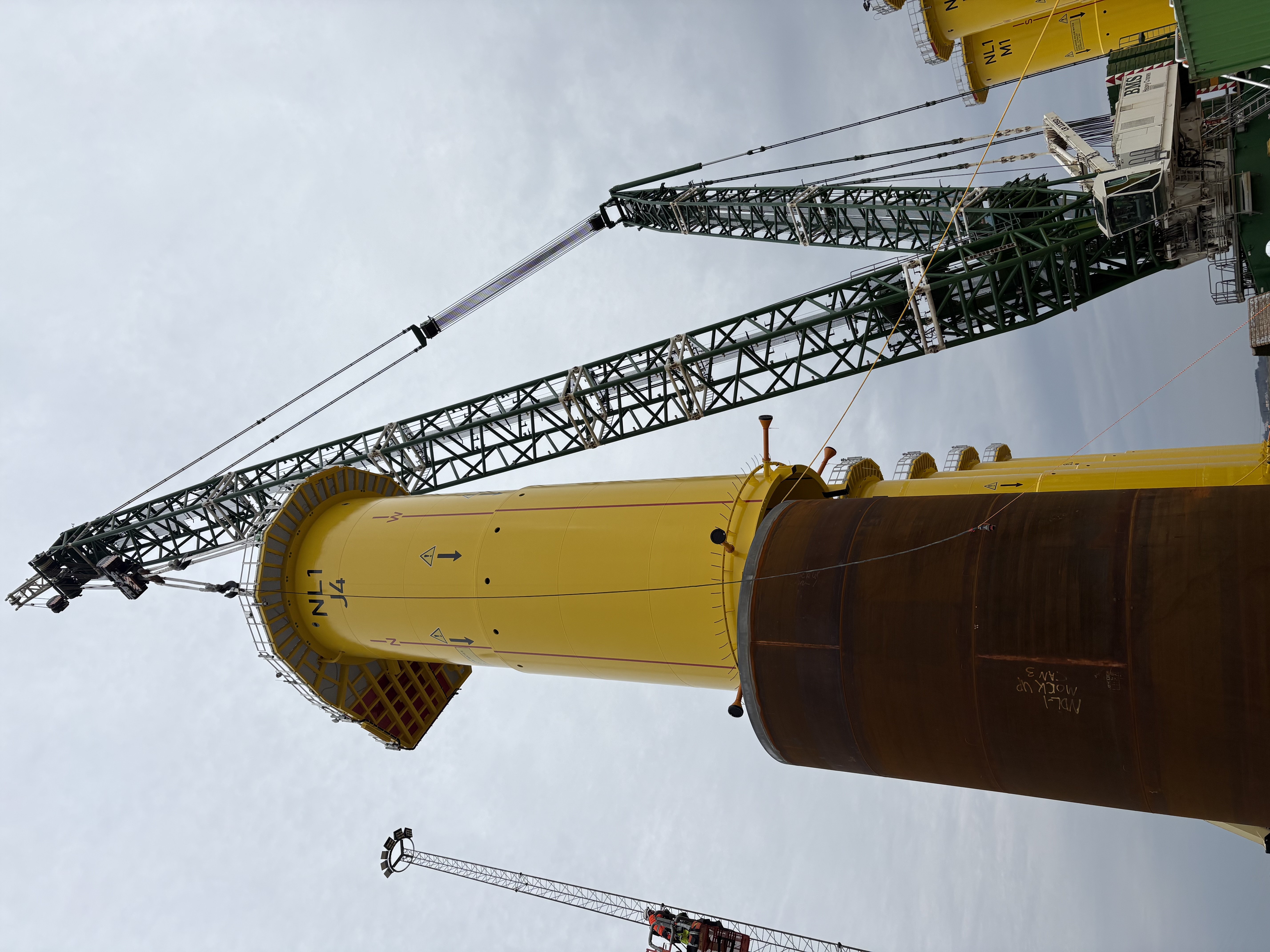 Das Transition Piece verbindet den Turm der Windenergieanlage mit dem Fundament am Meeresboden. Die Transition Pieces für Nordlicht I werden von CS Wind Offshore gefertigt, sind rund 23,7 Meter hoch und wiegen etwa 362 Tonnen. Die Installation erfordert komplexe Hebevorgänge, präzise Abläufe und das Zusammenspiel verschiedener Gewerke. Im Rahmen des Mock‑ups werden unter realistischen Bedingungen unter anderem Montage, Verschraubung, Kabeleinzug und-führung sowie Sicherheits‑ und Rettungsprozesse getestet.