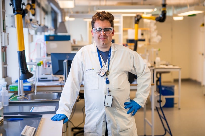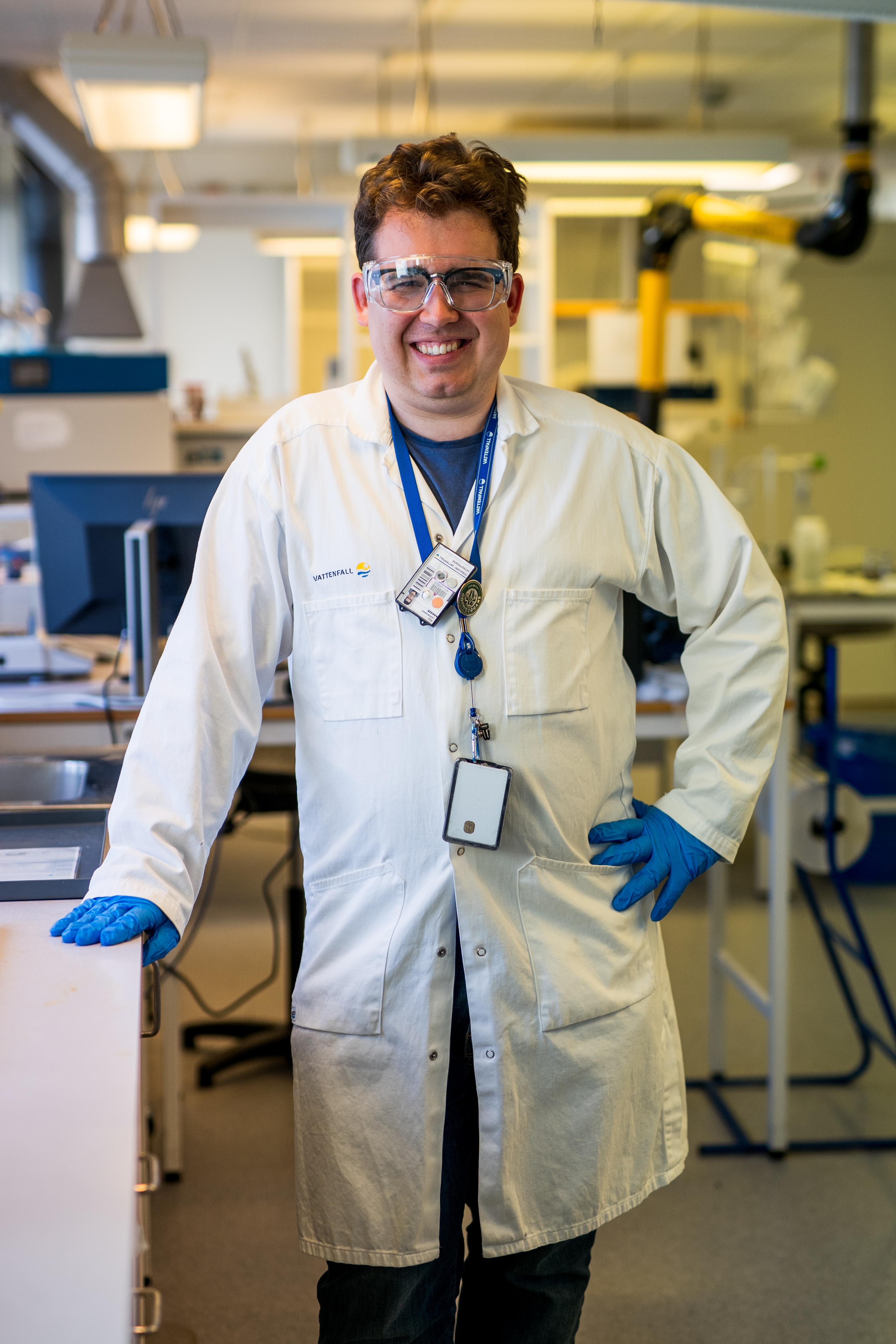 Det absolut bästa med hans jobb är att han får kombinera sina kemiska kunskaper i labbet med att utföra provtagningar och kontroller ute i anläggning på både den kontrollerade och icke-kontrollerade sidan.