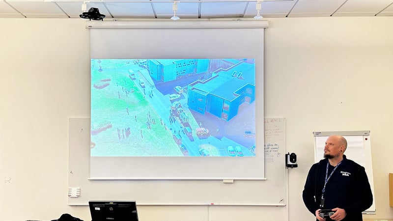 Station 4: Christoffer och Fredrik berättade om skydds- och övervakningsverksamheten – varför Ringhals skyddas, hur det går till och vilka olika yrkesroller som finns kopplat till säkerheten. Eleverna fick dessutom testflyga drönare via VR-glasögon – en aktivitet som blev mycket uppskattad.
